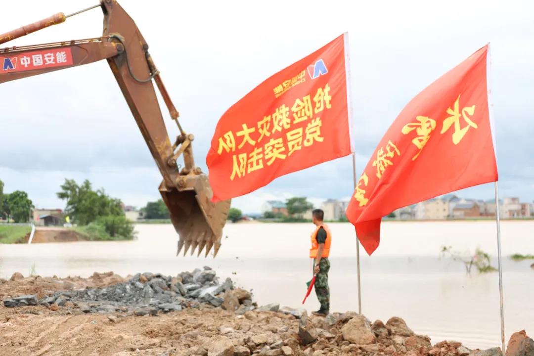 在安徽省蕪湖,中國鐵建中鐵十四局項目部在5分鐘內集結8名黨員和12名一線員工,成立黨員突擊隊,兵分兩路趕赴長江第一道防線現場,為抗洪救災拉去土方30車。6臺挖機,2臺后八輪,一線勞務工人50名,趕赴第二道防線現場抗洪搶險。