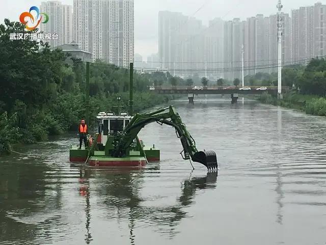 連續的強降雨也導致武漢市東湖水位上漲,為了及時抽排湖水,中國交建中交疏浚研究中心“武航一號”兩棲式環保疏浚船被緊急調往抗洪一線,清淤港渠,提升過水能力。實施清淤后,港渠過水流量可以達到每秒90立方米,有效提升東湖的泄洪能力。