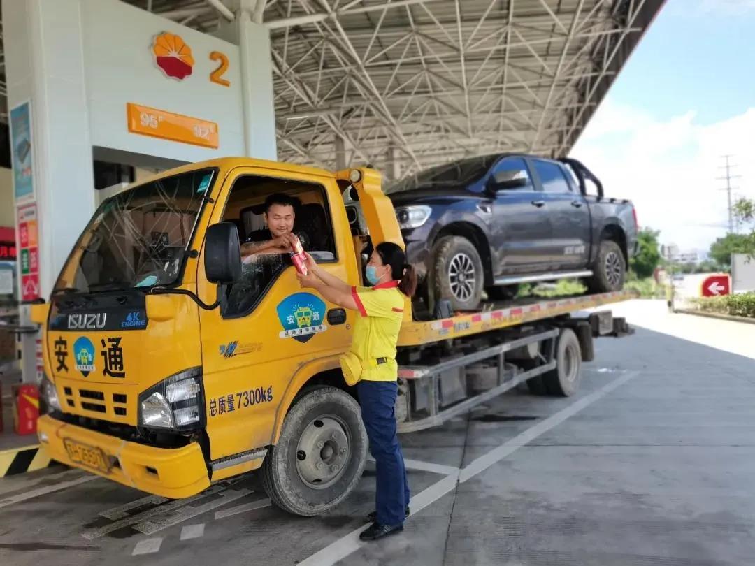 九江廬山石油隘口加油站工作人員桂駿為沙湖山防汛指揮部送油。