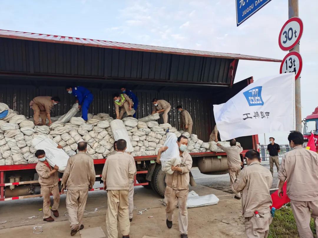 華中大區迅速集結120余名職工,帶上雨衣、雨鞋、手電筒、手套、功能飲料、礦泉水等各類防汛保障用品。員工們來不及換下工裝、皮鞋就火速趕往現場。