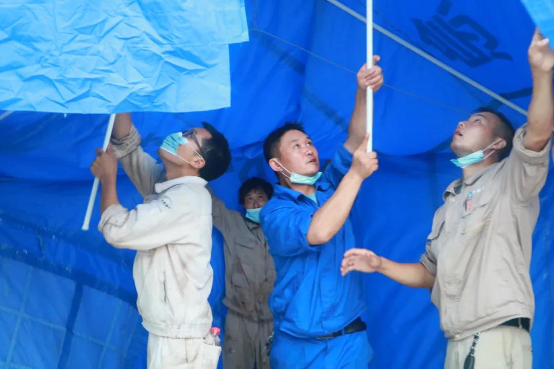 下午5點至凌晨1點,8個小時,近400頂帳篷,2500米建設線已在消泗鄉鋪設完畢。