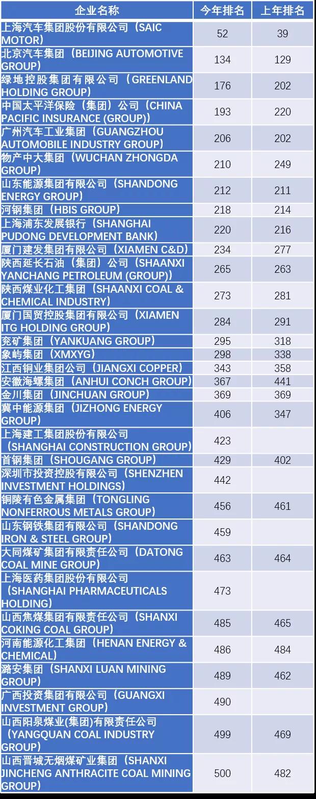 從區(qū)域看,上海市國資委監(jiān)管的企業(yè)已有6家上榜,分別是上汽集團(tuán)、綠地控股、太平洋保險(xiǎn)、浦發(fā)銀行、上海建工、上海醫(yī)藥,總數(shù)位居各省市第一。山西省國資委監(jiān)管企業(yè)為5家,均為煤炭行業(yè)企業(yè)。山東省有3家,分別是山東能源、兗礦集團(tuán)、山東鋼鐵。值得一提的是,前不久,山東能源已經(jīng)與兗礦集團(tuán)合并為新的山東能源,合并后企業(yè)營收達(dá)到932.16億美元,可以排名總榜單第81位,在中國的上榜企業(yè)中,可以排在第21位。此外,排名435位的海爾是山東青島的一家集體所有制企業(yè)。《國資報(bào)告》記者還注意到,今年仍然有3家廈門市國資委監(jiān)管企業(yè)上榜,分別是廈門建發(fā)、廈門國貿(mào)、象嶼集團(tuán),且排名均在300名以內(nèi);廣州國資委監(jiān)管的廣汽集團(tuán)排名為206位;深圳市國資委出資的深圳投資管控首次上榜,排名為442位。