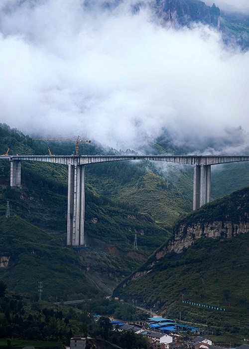 云霧繚繞,峽谷之間,一座大橋,天塹變通途,為山里的同胞送去致富的希望