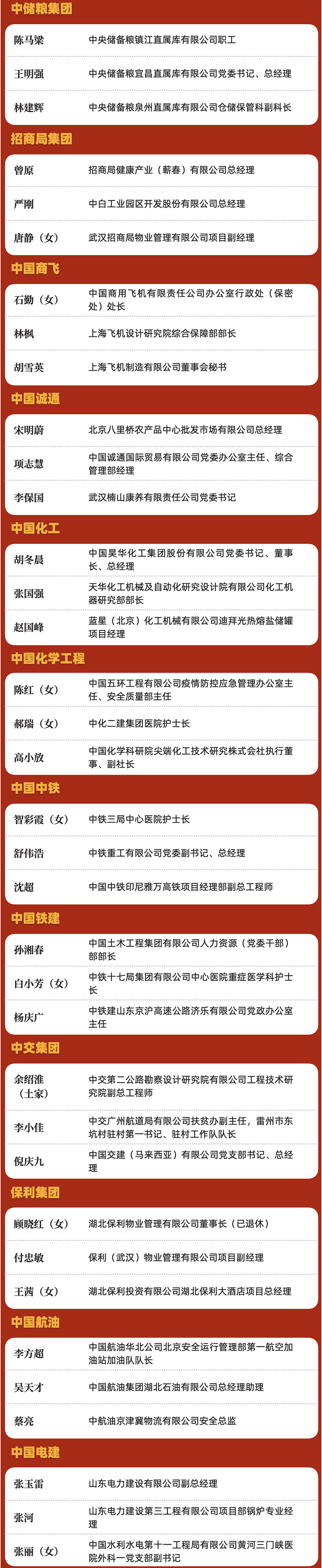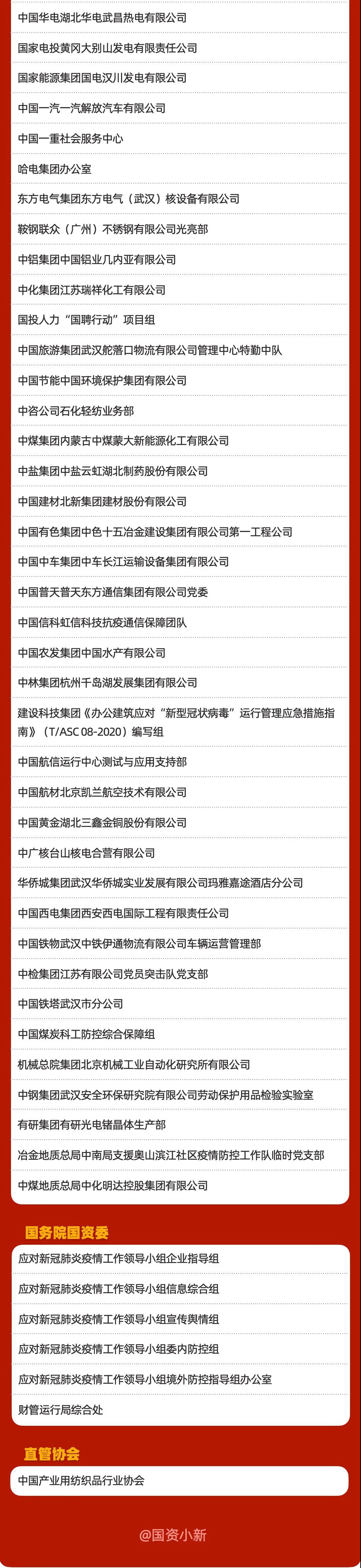 10月22日,國(guó)資委黨委印發(fā)《國(guó)資委黨委關(guān)于表彰中央企業(yè)抗擊新冠肺炎疫情先進(jìn)個(gè)人和先進(jìn)集體的決定》,授予陳建光等300名同志“中央企業(yè)抗擊新冠肺炎疫情先進(jìn)個(gè)人”稱號(hào);授予中國(guó)建筑中建三局集團(tuán)有限公司工程總承包公司等100個(gè)集體“中央企業(yè)抗擊新冠肺炎疫情先進(jìn)集體”稱號(hào)。