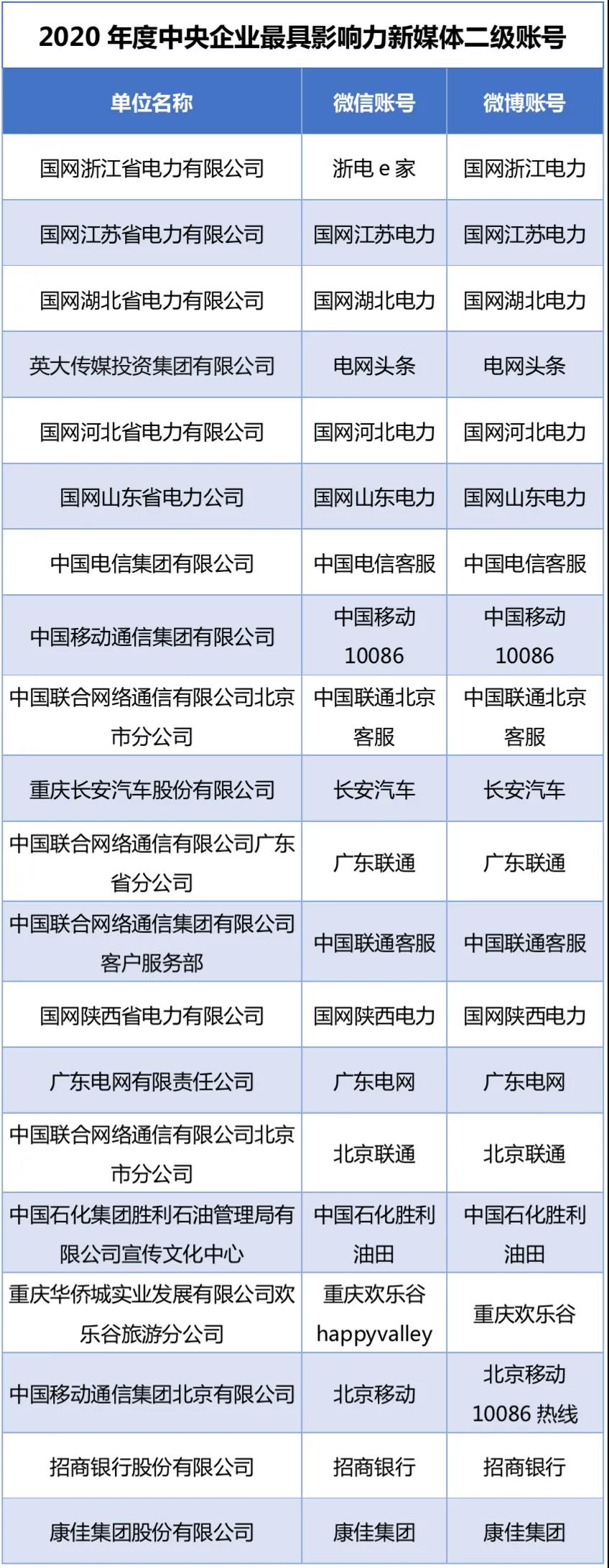 本屆中國企業新媒體年會推出一系列新媒體創新發展典型——國資委新聞中心、清博大數據、清華大學新聞研究中心結合大數據分析,聯合發布2020年度系列榜單——“2020年度中國企業最具影響力新媒體賬號”“2020年度中央企業最具影響力新媒體賬號”“2020年度中央企業最具影響力新媒體二級賬號”,旨在更好地幫助中國企業新媒體發展對標。