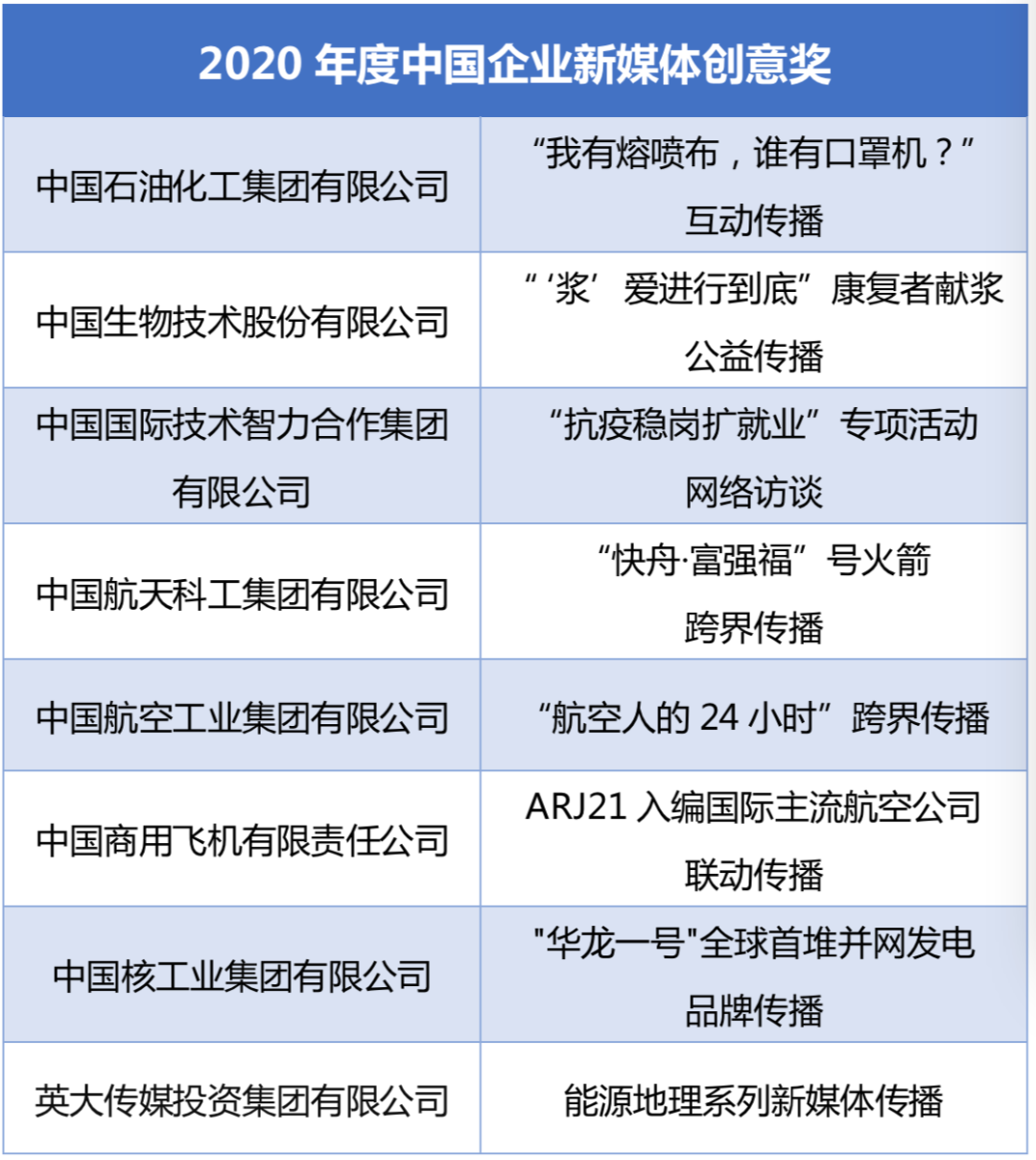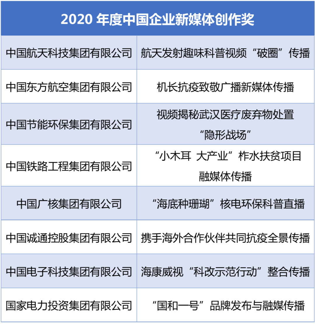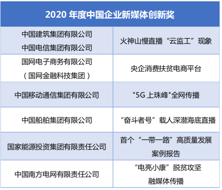 與此同時,根據中國企業新媒體在創新發展方面取得的突出成果,發布“2020年度中國企業新媒體創新獎、創意獎、創作獎”。