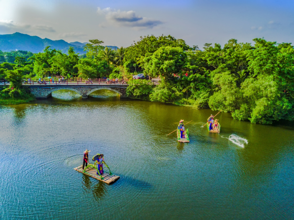在海南三亞中廖村,竹籬笆和檳榔樹環(huán)繞黎家小屋,極具特色的黎族圖騰和色彩絢麗的文化墻相得益彰,婦女們席地而坐編制精美黎錦,阿公們傾情演奏傳統(tǒng)鼻蕭,黎家演藝小院里的阿哥阿妹身著民族服飾與游客一同縱情歌舞……華僑城在保留中廖村好水好景、尊重地域發(fā)展文化脈絡(luò)的基礎(chǔ)上,就地取材,以鄉(xiāng)村旅游實現(xiàn)富民惠民。