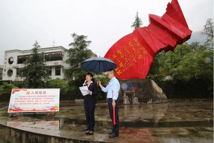 在東汽廠區(qū)地震遺址,東汽職工陳鳳結(jié)合黨史學(xué)習(xí)教育,現(xiàn)場動情講述東汽災(zāi)后重建的感人故事。
