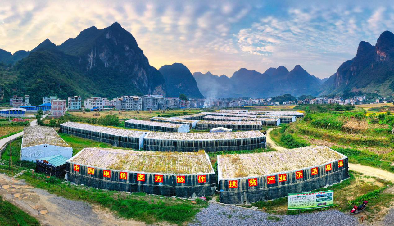 百色市的田林縣,則在中國電信的幫扶下因地制宜地建成了555個姬松茸種植大棚,年產姬松茸2800噸,產值2500萬元,帶動1200戶群眾增收。通過“村民合作社+龍頭企業”聯合的發展模式,解決了姬松茸產業生產中的技術、管理、銷售等問題,而產業園區的建設則實現了產業從量到質的飛躍式發展,讓長期可持續“造血”成為可能。