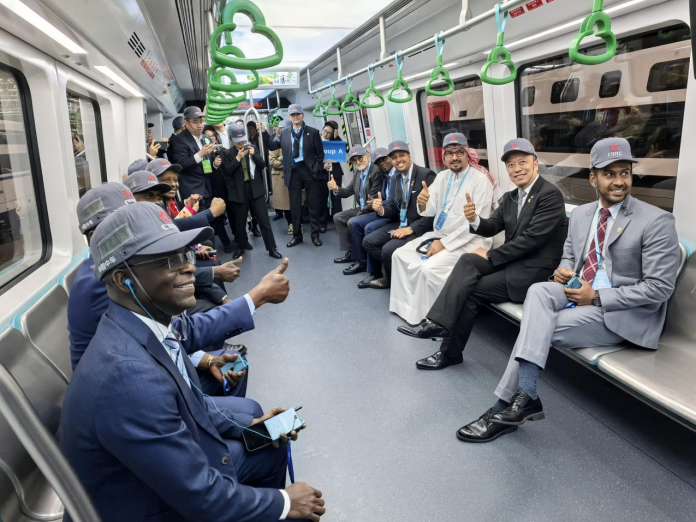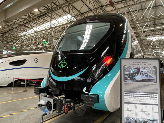 在中車唐山公司組裝事業部數字化調試產線的參觀中,可變編組動車組和福州濱海快線列車吸引了使節們的注意。在福州濱海快線列車的樣車里,車頂采用藍天白云照明,為乘客打造“沉浸式”的乘車環境;福州地鐵logo型的拉手高度適中,滿足當地人使用的個性化需求;橫縱座椅排布,設置大件行李柜,保證較大載客量的同時為長途乘客提供了舒適的乘坐體驗。同樣,考慮到福州濱海快線是連通火車站和機場的沿海地上線路,列車外機采用了耐腐蝕性及耐濕度的材料,以適應當地氣候。