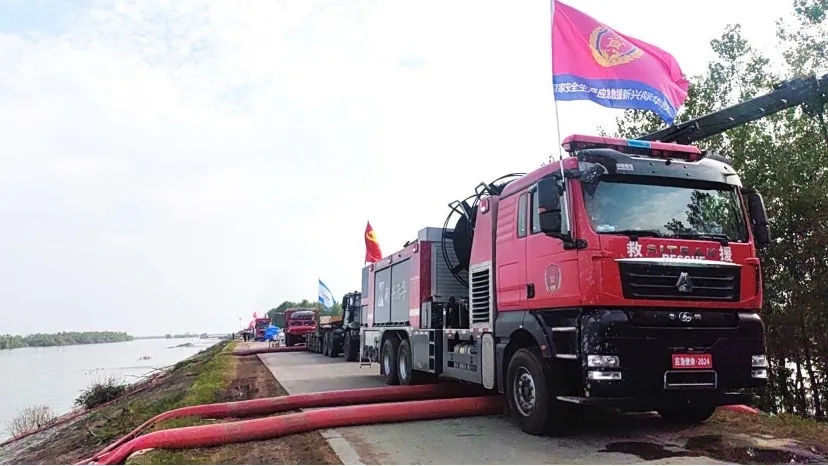 7月8日22時,湖南省岳陽市華容縣團洲垸大堤決口封堵完成,抗洪救災取得階段性勝利。與此同時,團洲垸內滯留有約2.1億立方米水量,威脅人民生命財產安全的險情仍未解除。國家防辦、應急管理部組織部署,從多省份調派排澇力量實施跨省區增援,執行積水排澇任務。