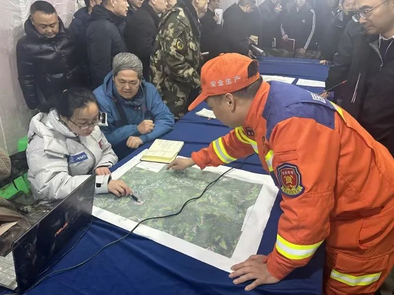 中國電建所屬成都院緊急組建應急管理部工程應急救援勘測隊,火速派出4名應急專家及2名輔助人員攜帶邊坡雷達、無人機、地理勘測信息系統,于2月8日晚趕赴現場參與搶險工作。救援隊于9日凌晨到達現場,隨即參與救援任務。采用無人機快速獲取現場三維影像,于上午9時左右生成三維傾斜攝影模型,構建現場救援實景,形成滑坡體應急圖,前后方專家會商后初擬救援現場勘測方案,供現場救援決策。