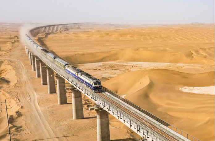 近日,中國證券報記者來到地處塔克拉瑪干沙漠邊緣的新疆和田,站在和田站的月臺上,恰逢一列從若羌駛來的列車徐徐進(jìn)站。三年前,沙丘連綿的塔克拉瑪干沙漠還是一片人跡罕至的地方。如今,由中國鐵建參建的和若鐵路橫貫塔克拉瑪干沙漠南緣,為南疆大地注入蓬勃生機(jī),讓塔里木盆地周邊五縣徹底告別不通火車的歷史,成為沿線經(jīng)濟(jì)發(fā)展的新動脈。