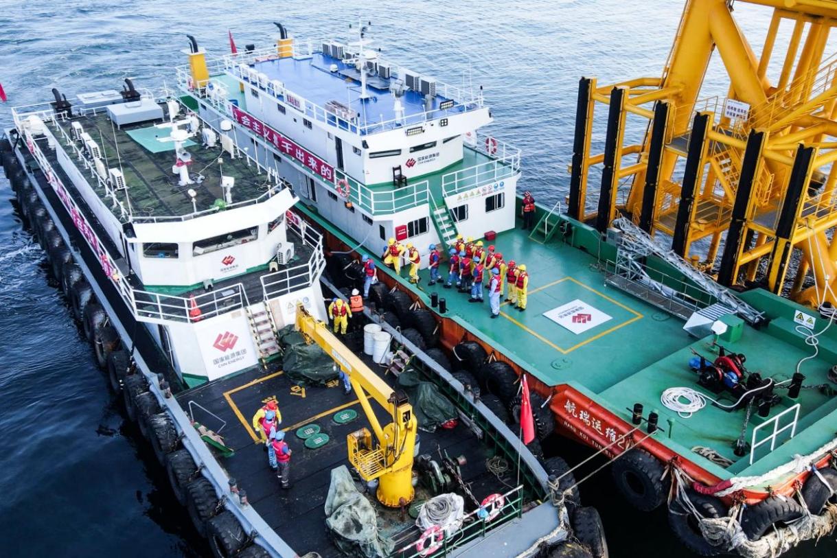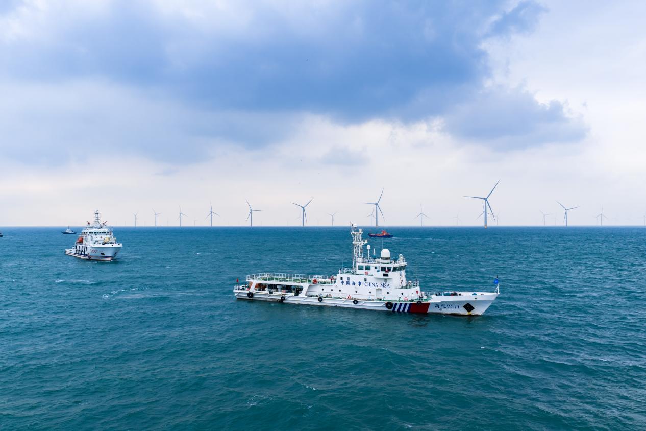 本次演習所在的望海風電場海域位于山東半島南部。望海風電場是全國首個離岸超30公里、水深超30米的海上風電項目,擁有全國首個無人值守智能化升壓站。該風電場所在的山東半島南海上風電集群,總裝機容量超300萬千瓦,可滿足800萬普通城鎮居民一年的用電需求,承擔著保障青島、威海、煙臺三市的能源供應。