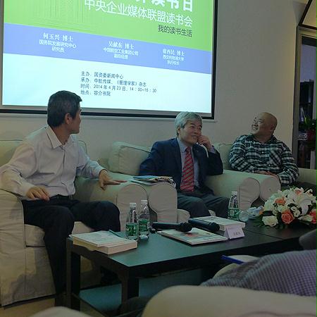 4月23日,世界讀書日到來之際,中央企業(yè)媒體聯(lián)盟舉辦了主題為“我的讀書生活”的“央企媒體讀書會”活動(dòng)。活動(dòng)邀請了中航工業(yè)副總經(jīng)理吳獻(xiàn)東、國務(wù)院發(fā)展研究中心何玉興博士及西交利物浦大學(xué)執(zhí)行校長席酉民博士,同參會“書友”分享了各自的“讀書生活”。