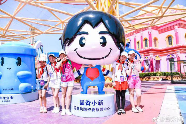 6月1日下午2點,一群萌萌噠卡通人偶出現在北京歡樂谷,一場“快閃”正在上演。“國資小新”與12個央企卡通形象人偶、25名央企一線員工和5名北京興華農民工打工子弟學校的小學生一起跳起時下流行的“C哩C哩” 舞、“拍灰舞”,數百名觀眾聞聲而來,自發地加入舞蹈隊伍,熱鬧非凡。在熱力四射的開場之后,“央企卡通部落揭幕儀式”舉行,“國資小新”攜手12家央企卡通雕塑落地,傾力打造與公眾零距離的“央企卡通部落”。