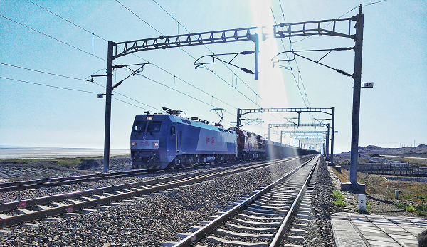 圖為開往哈薩克斯坦的電氣化線路火車。(國資委新聞中心 雷玉川攝)