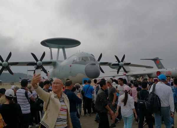 現(xiàn)場觀眾與空警-500預(yù)警機(jī)一同自拍