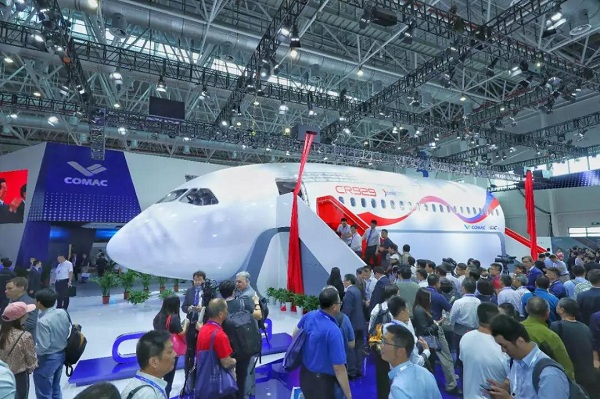 CR929飛機(jī)展示樣機(jī)與真實(shí)飛機(jī)的比例為1:1,樣機(jī)機(jī)身全長為22米;高度6.5米;寬度5.9米。最大可登機(jī)人數(shù)53人,共布置2排頭等艙,3排公務(wù)艙,4排經(jīng)濟(jì)艙,最大可盡顯頭等艙的豪華,公務(wù)艙的舒適以及經(jīng)濟(jì)艙的寬敞。