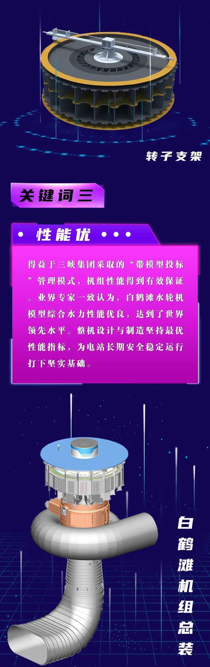 轉(zhuǎn)子是水輪發(fā)電機(jī)組的重要轉(zhuǎn)動(dòng)部件。機(jī)組運(yùn)行時(shí),轉(zhuǎn)子轉(zhuǎn)動(dòng)產(chǎn)生旋轉(zhuǎn)磁場(chǎng),切割定子繞組,從而產(chǎn)生感應(yīng)電勢(shì)、輸出電能。白鶴灘水電站左岸機(jī)組轉(zhuǎn)子外圓直徑約16.2米,最大高度約4.1米,起吊重量達(dá)2100噸,是機(jī)組安裝過(guò)程中重量最大的核心部件。