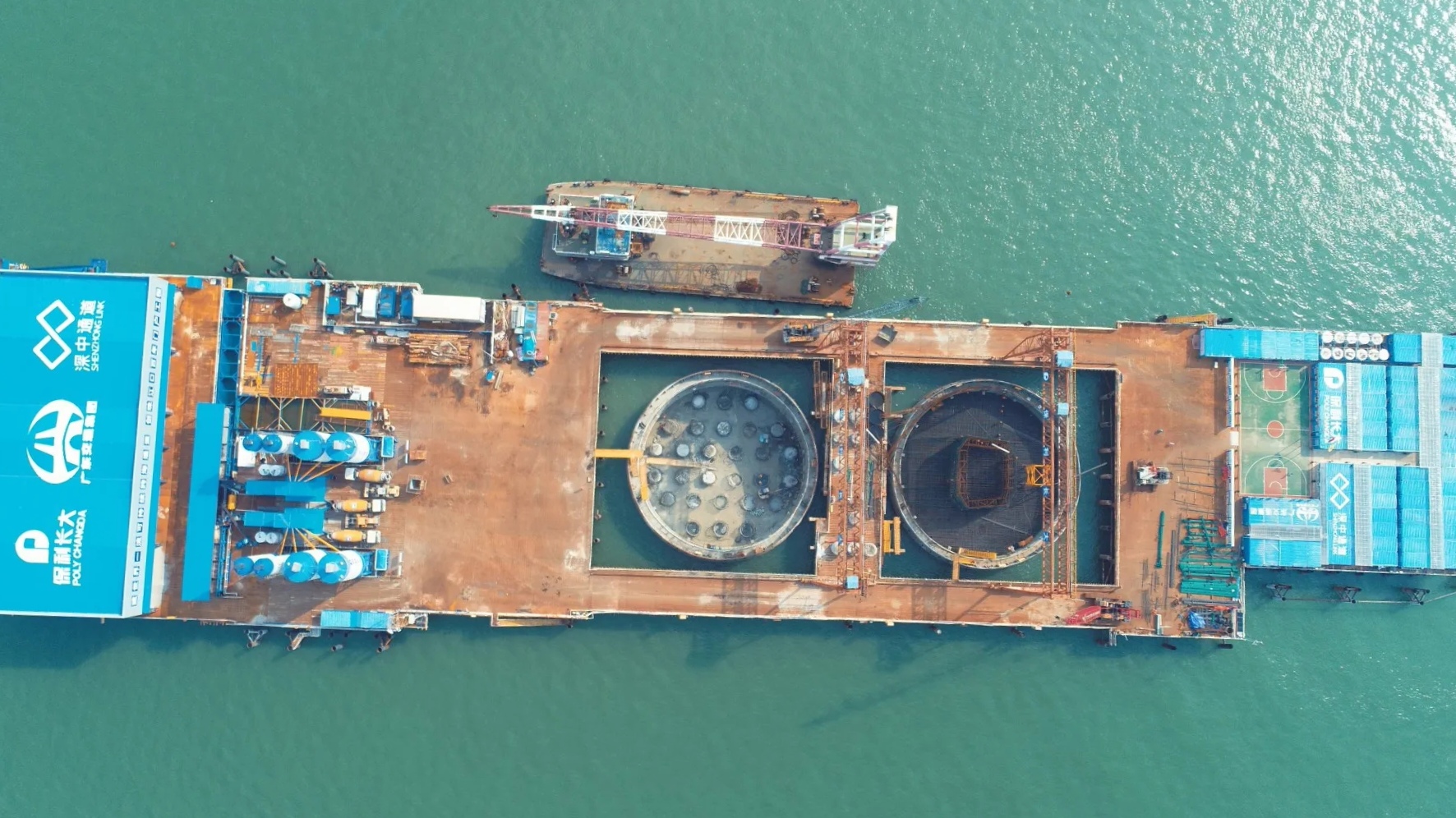 保利集團保利長大承建的國家重點工程——深中通道伶仃洋大橋海上施工平臺。