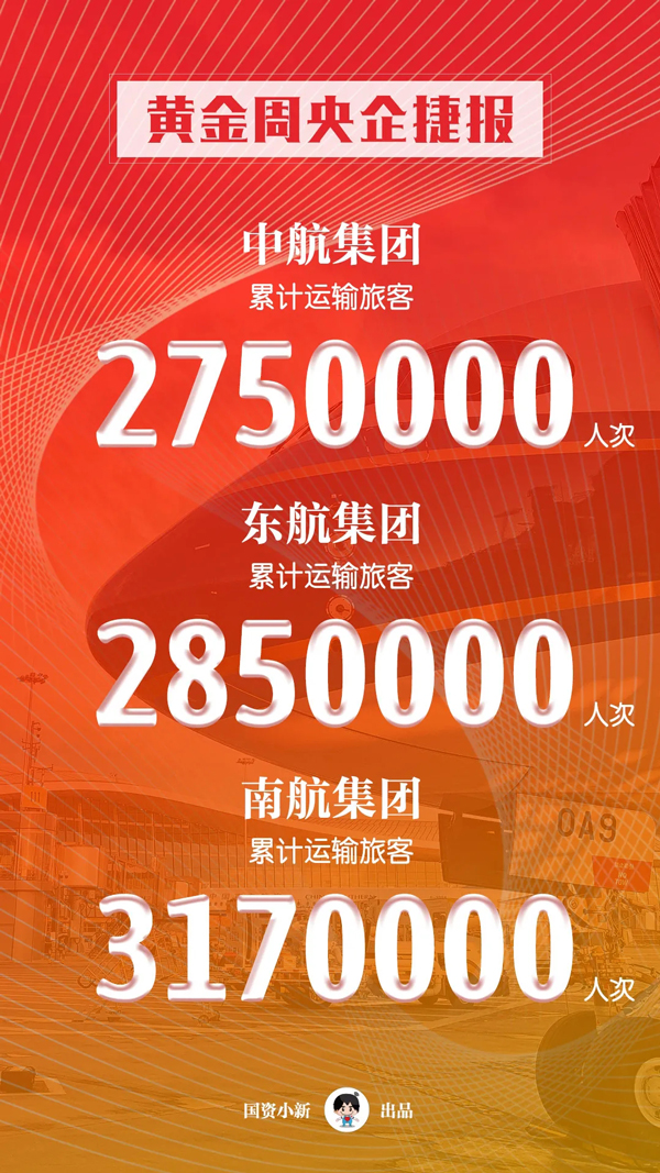 8天長假期間全國共接待國內游客6.37億人次,按可比口徑同比恢復79.0%,實現國內旅游收入4665.6億元,按可比口徑同比恢復69.9%。作為國民經濟重要支柱的中央企業,是假期消費旺、經濟暖的注腳,是假日經濟的服務保障。一起來看黃金周央企捷報——