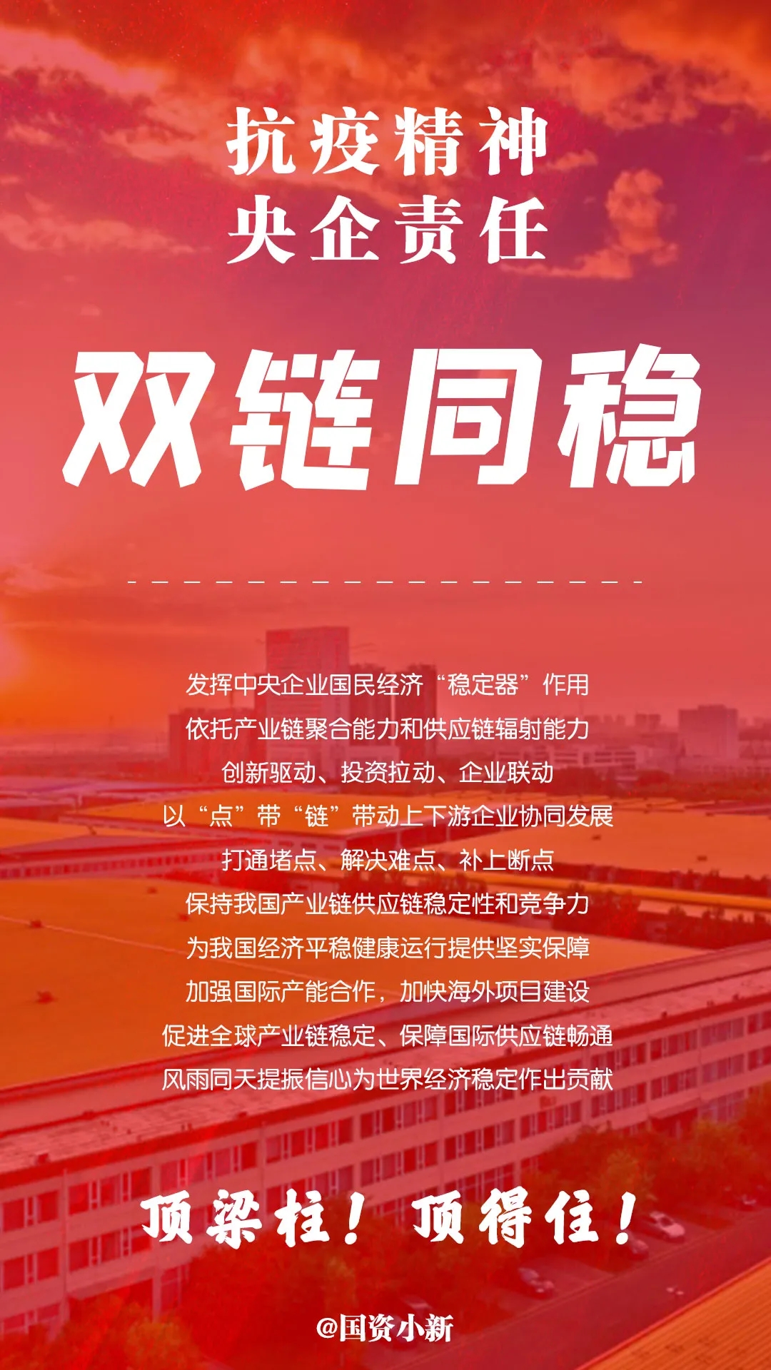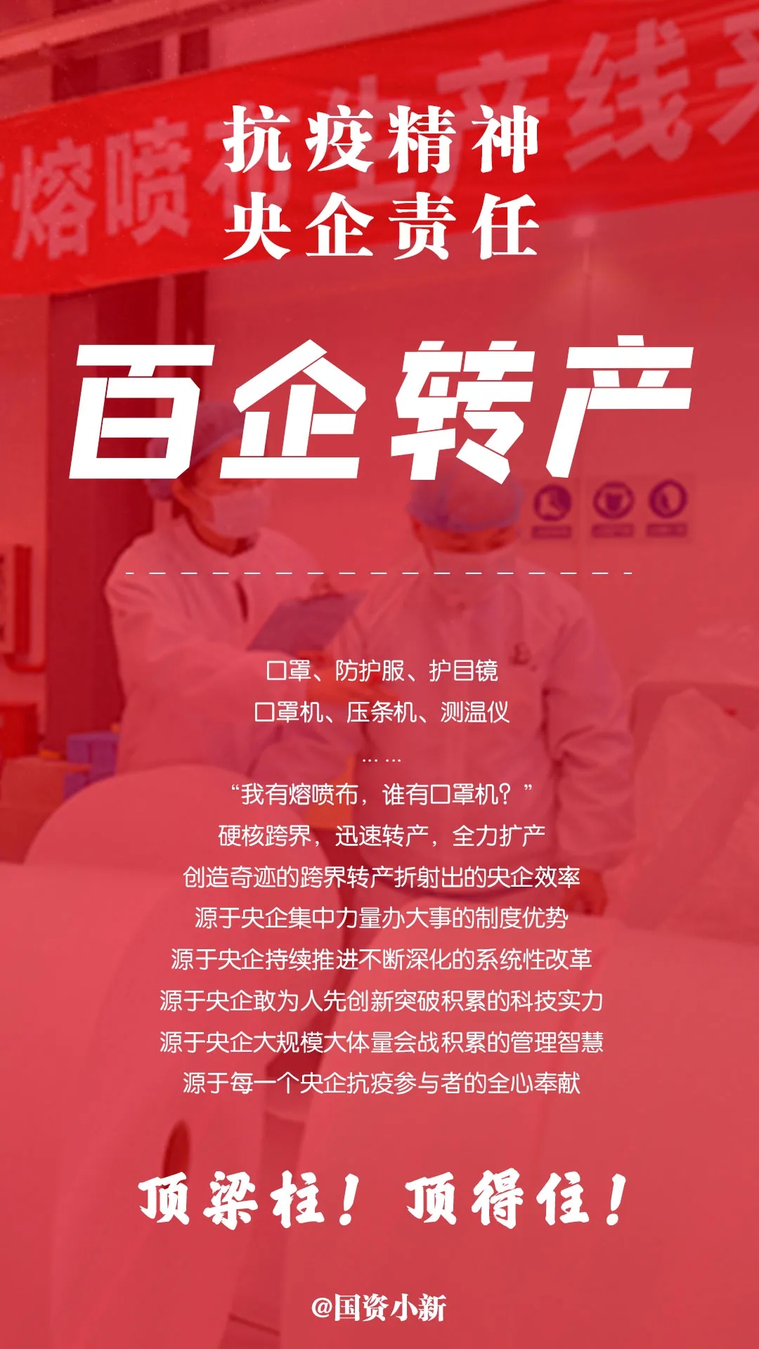 一苗當先,領先世界;兩山速度,創造奇跡;三不承諾,保供穩價;五降擔當,全力保障;百企轉產,硬核跨界;雙鏈同穩,協同發展。數說央企抗疫精神,共同見證央企責任。