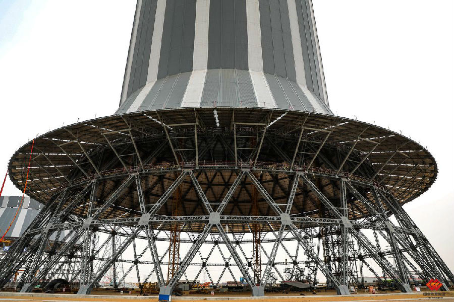 2021年1月15,國家能源集團國電上海廟項目間接空冷系統1號冷卻塔底部仰視圖。國家能源集團國電上海廟項目將從“安全、高效、環保、低碳、靈活、智慧”六個維度出發,將該項目打造成綠色燃煤電站示范工程和智慧燃煤電站示范工程。