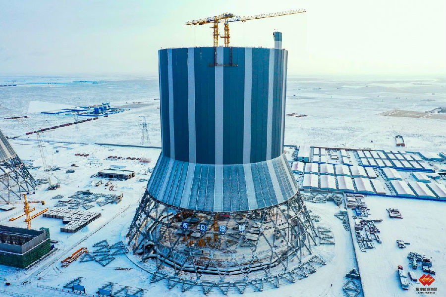 2020年11月21日,內蒙古鄂爾多斯市前旗地區的溫度已降至零下20攝氏度。相比冬季因低溫結塊無法施工的混凝土型塔,1號冷卻塔憑借其鋼質優勢可以繼續施工。