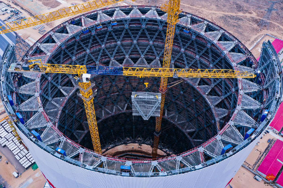 國家能源集團“巨無霸”鋼結構冷卻塔結頂精彩瞬間