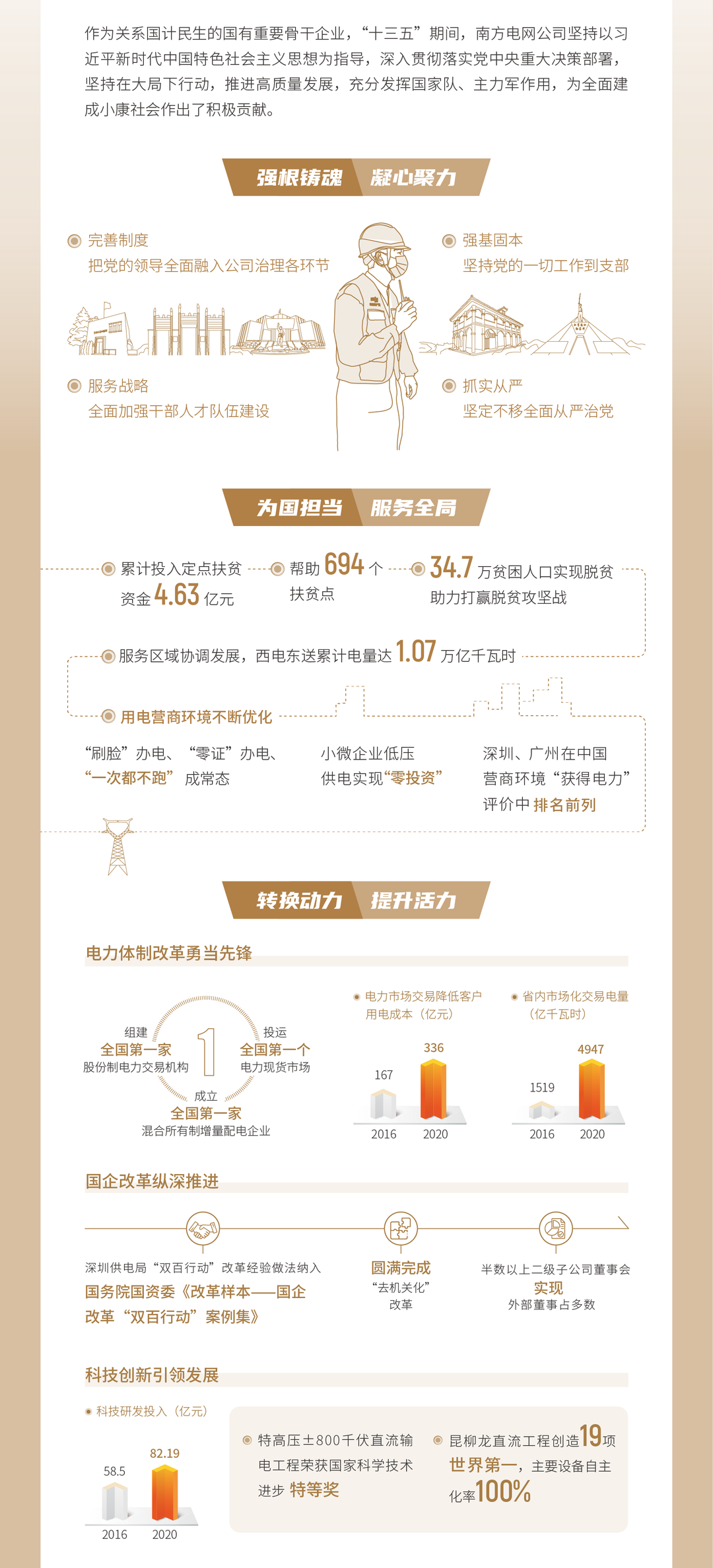7月8日,南方電網公司《2020企業社會責任報告》(以下簡稱《報告》)正式發布,這是南方電網公司連續第14年發布企業社會責任報告,報告連續11年獲得五星級評價。《報告》顯示,2020年,南方電網公司售電量11068億千瓦時,同比增長5.2%,南方電網非化石能源裝機、電量占比分別達55.6%和53.2%,連續14年獲國務院國資委年度經營業績考核A級,在世界500強企業中排名第105位。一圖了解南方電網公司《2020企業社會責任報告》。
