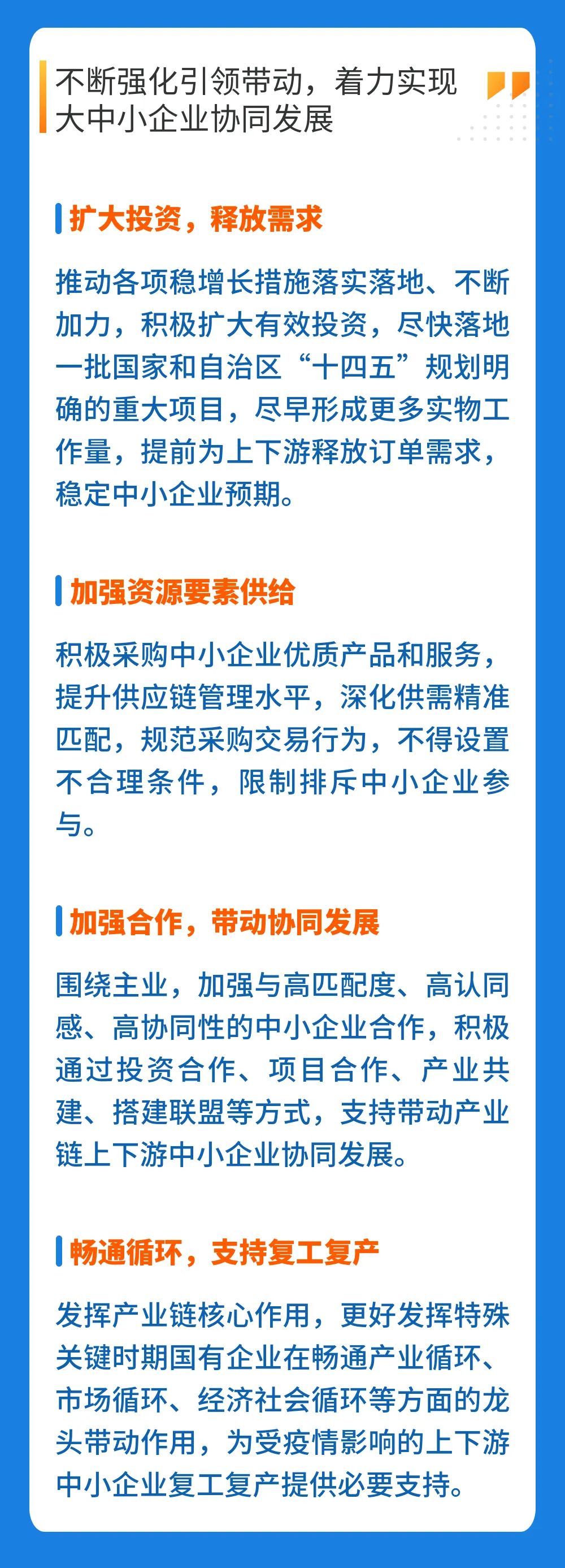 一圖看懂《關于中央企業助力中小企業紓困解難促進協同發展有關事項的通知》