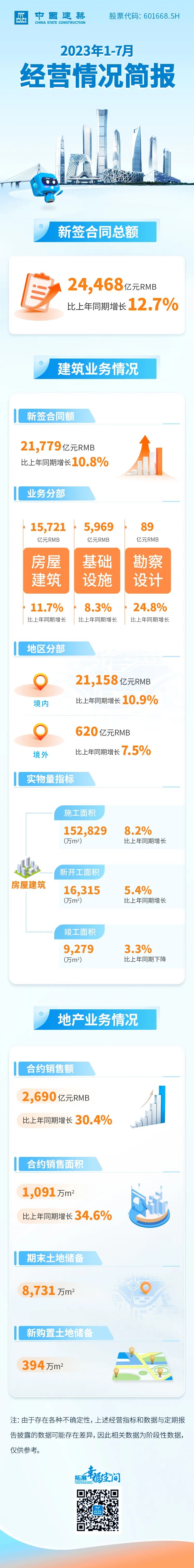 一圖讀懂中國建筑2023年1-7月經營情況簡報