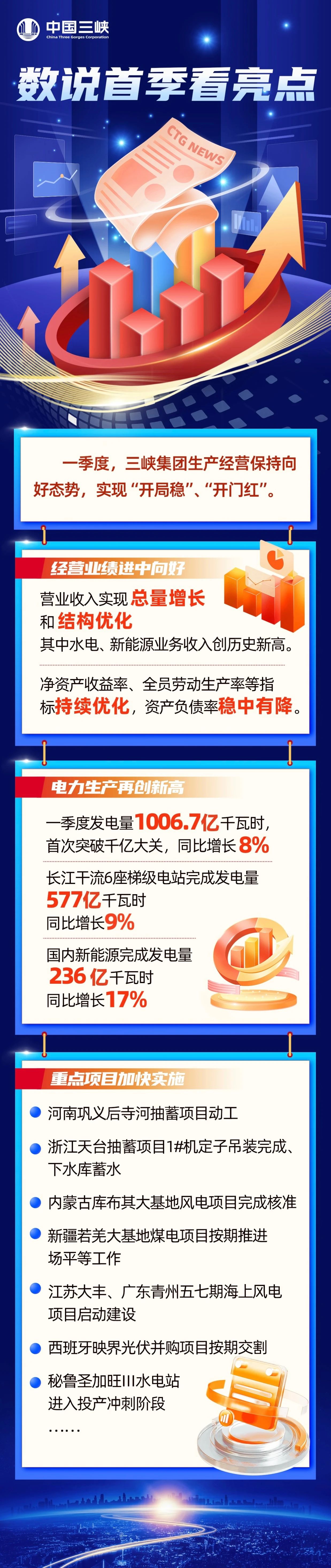 一圖速覽中國三峽集團(tuán)第一季度生產(chǎn)經(jīng)營亮點