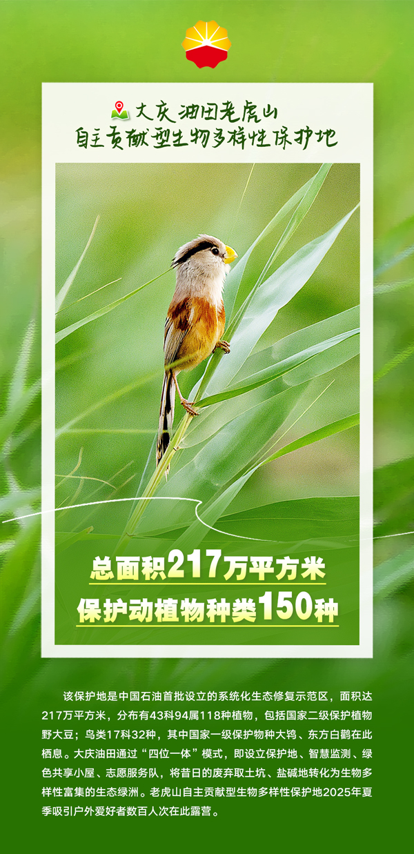 至此,中國石油已在全國設立12個OECMs,占地面積6.59萬畝,綠色共享小屋9個,成為生物多樣性科普的重要陣地,197位志愿服務人員承擔OECMs保護巡護員和綠色共享小屋講解員職責。今天讓我們一起步入中國石油設立的自主貢獻型生物多樣性保護地,看看這12張亮麗的中國石油“綠色新名片”吧。