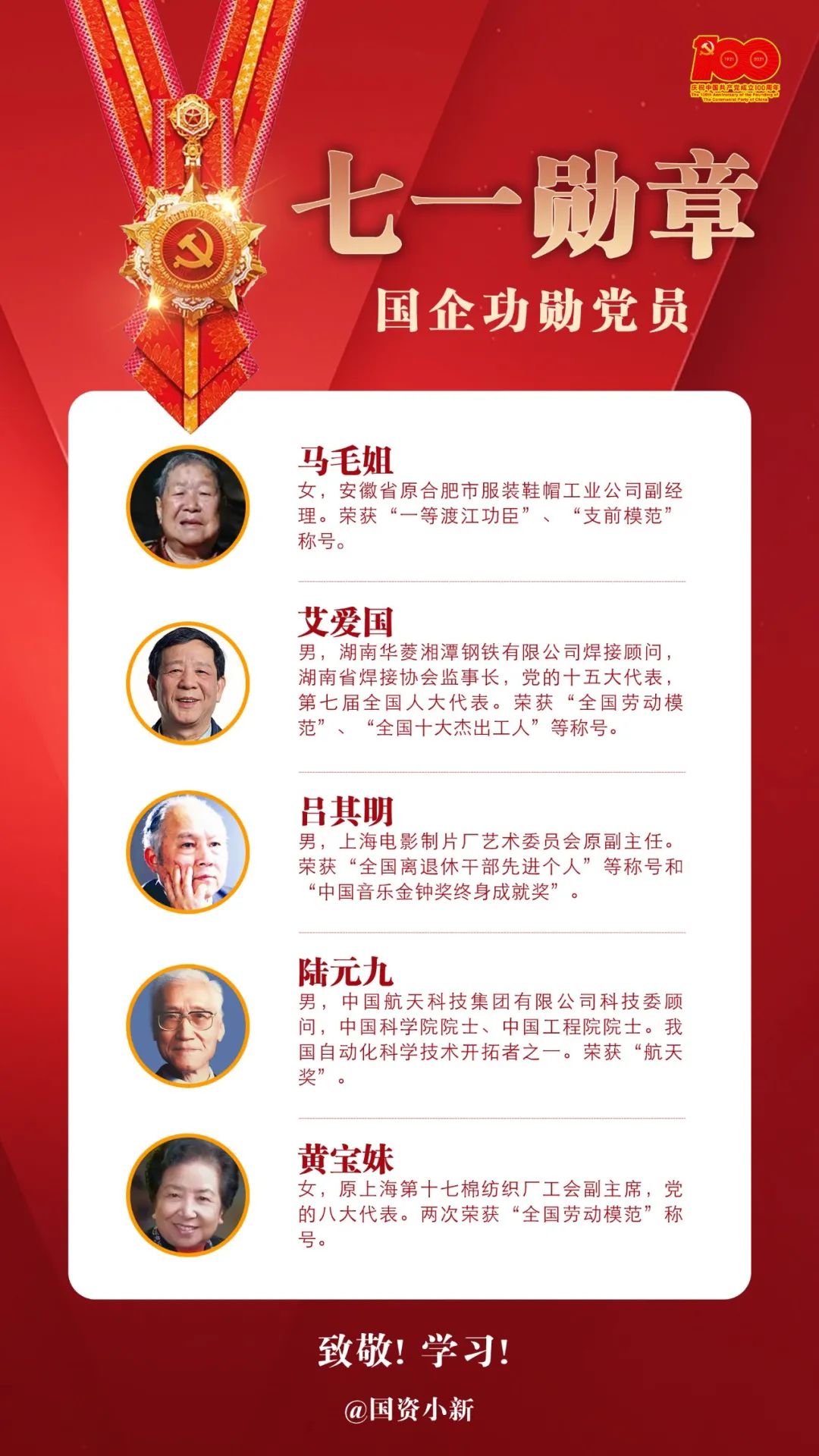 在中國共產黨的堅強領導下,國有企業奮力拼搏、勇挑重擔為黨和國家事業發展建立了不朽功勛!29位功勛黨員中,5位來自國有企業,致敬學習!