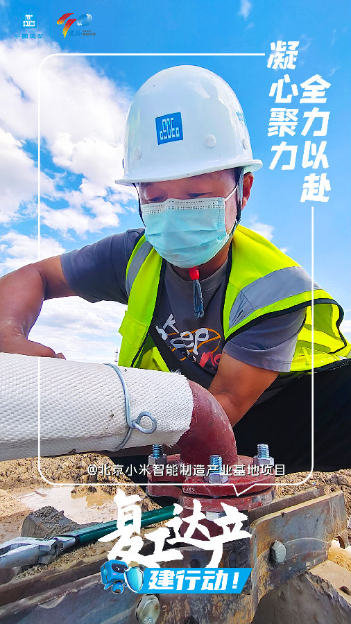 在北京小米智能制造產(chǎn)業(yè)基地項目,中建三局建設(shè)者正在進行消防水帶安裝。