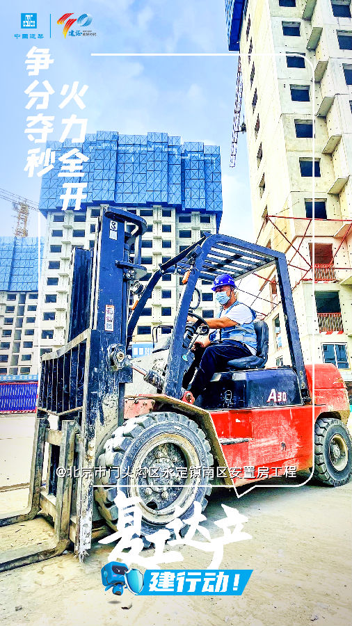 在北京市門頭溝區(qū)永定鎮(zhèn)南區(qū)安置房工程,中建六局建設(shè)者正在對物料進行運輸。