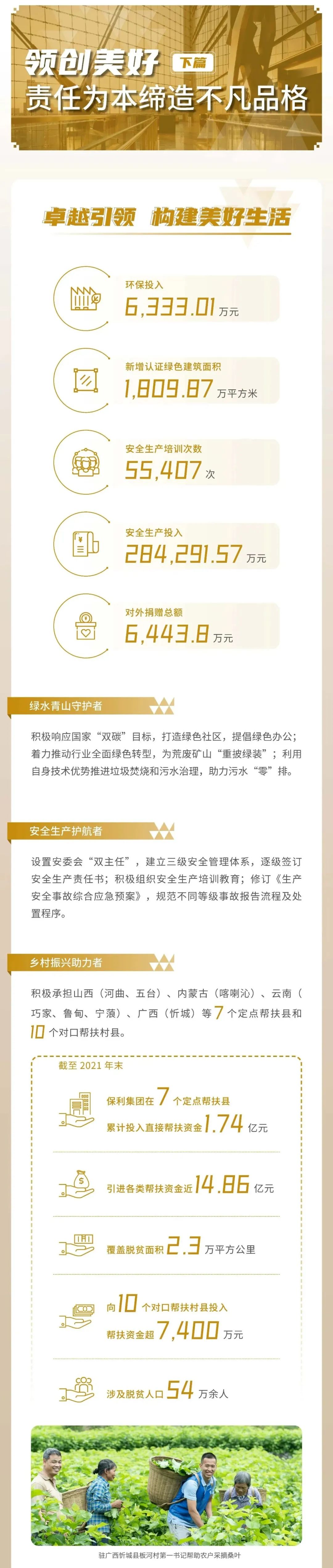 近日,保利集團(tuán)公開發(fā)布2021社會(huì)責(zé)任報(bào)告,連續(xù)第九次面向社會(huì)展現(xiàn)保利責(zé)任擔(dān)當(dāng)。報(bào)告解讀了2021年保利集團(tuán)在服務(wù)國(guó)家發(fā)展大局、加快產(chǎn)業(yè)協(xié)同合作、健全企業(yè)經(jīng)營(yíng)機(jī)制、守護(hù)綠水青山、保障社會(huì)民生、助力員工成長(zhǎng)等方面的貢獻(xiàn),回顧了保利人奮發(fā)有為、勇毅擔(dān)當(dāng)?shù)穆呢?zé)之路。
