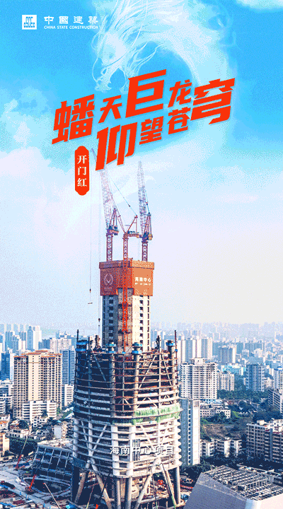 蟠天巨龍,仰望蒼穹。海南中心項目運用企業自主研發的最新一代“空中造樓機”,保障核心筒快速高效建設,這座4層半樓層高度的“移動工廠”,可滿足多個工種流水作業,實現高效立體化施工,助力海南第一高樓沖破云霄。