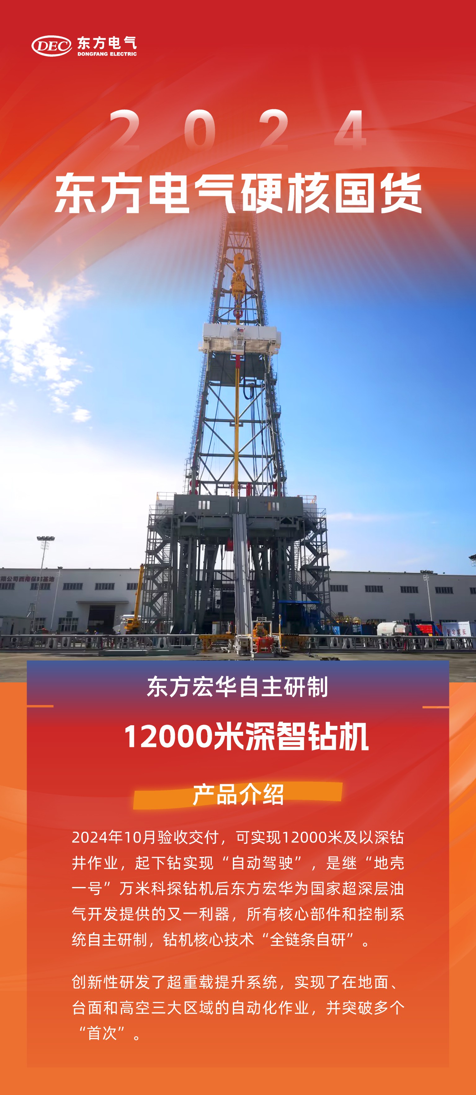 東方電氣集團以服務國家重大戰略為己任,深入實施創新驅動發展戰略,加強原創性引領性科技攻關,帶動創新鏈產業鏈融合發展,打造發展新質生產力新引擎,奮力推動能源裝備制造業高質量發展。今年以來,已打造形成了一批自主研制裝備產品新成果。