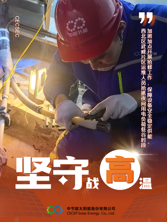 眼下正值迎峰度夏的關鍵時期,中國節能所屬太陽能公司開啟“高溫護航”模式,運維人員堅守崗位,全力保障電力供應。