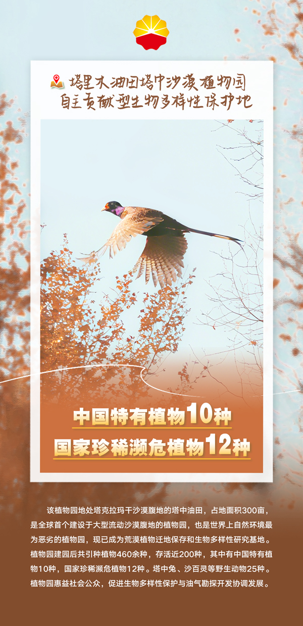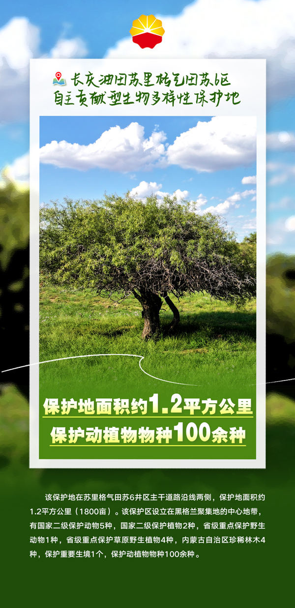 至此,中國(guó)石油已在全國(guó)設(shè)立12個(gè)OECMs,占地面積6.59萬(wàn)畝,綠色共享小屋9個(gè),成為生物多樣性科普的重要陣地,197位志愿服務(wù)人員承擔(dān)OECMs保護(hù)巡護(hù)員和綠色共享小屋講解員職責(zé)。今天讓我們一起步入中國(guó)石油設(shè)立的自主貢獻(xiàn)型生物多樣性保護(hù)地,看看這12張亮麗的中國(guó)石油“綠色新名片”吧。