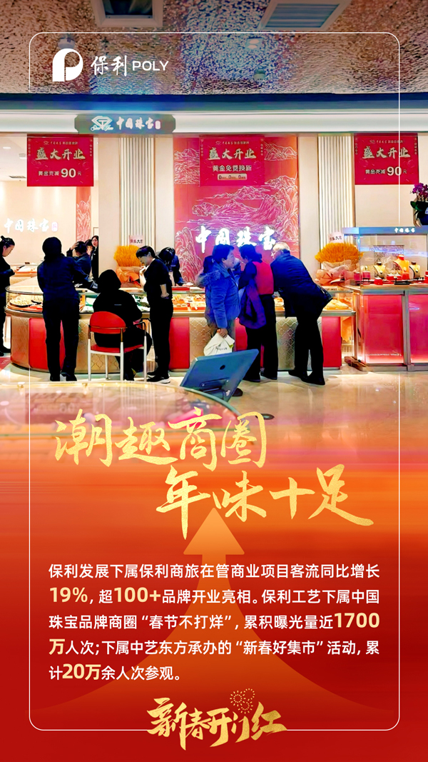 春節假期,在張燈結彩的社區街巷中,在熱鬧非凡的保利商圈里,處處彌漫著濃厚的年味。保利集團工作人員堅守崗位為千家萬戶的新春佳節增添亮色,一起回顧保利春節大數據,看看那些藏在節日里的溫暖與美好。