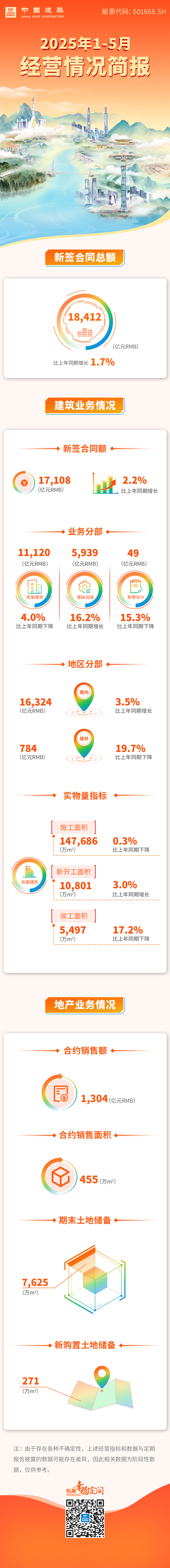 一圖速覽中國建筑2025年1-5月經營情況簡報