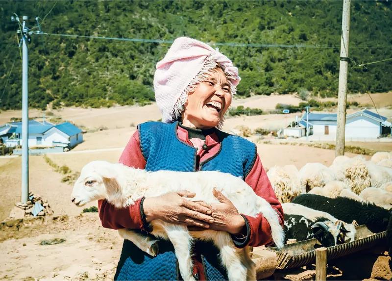發展產業是實現脫貧的根本之策。通過產業扶持,中國華能四川公司對口幫扶的涼山州昭覺縣團結村脫掉了貧困村的帽子。圖為2020年3月30日,該村一貧困戶在“借羊還羊”項目獲得豐收后喜笑顏開。中國華能四川公司供圖 何松/攝