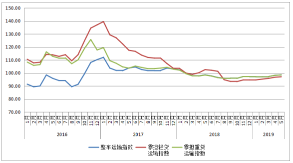 表1 2019年5月中國公路物流運(yùn)價(jià)指數(shù)表