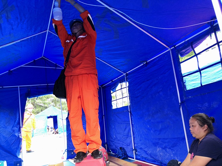 航天科技工程師正在現場進行應急通信設備調試