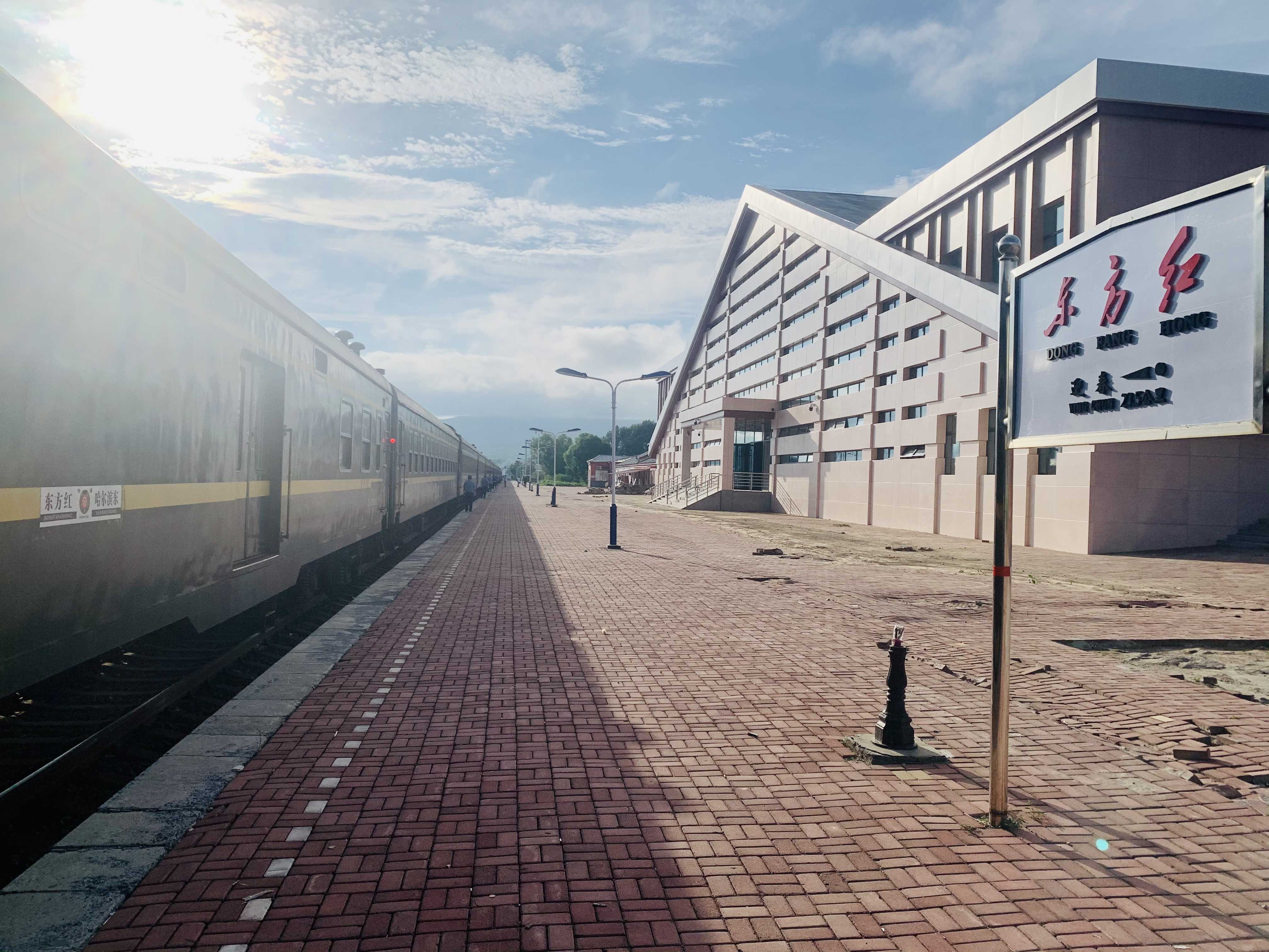 東方紅站是我國東北鐵路網的“極點站”,其地理位置與歷史意義極為特殊——該站為時任農墾部部長王震于1958年指揮各路轉業官兵向“北大荒”進軍時,在視察密東(密山至東方紅)鐵路建設時期命名的“終點站”,站名寓意著“中國最早迎來太陽的地方,象征著曙光和希望”。該站也成為見證“十萬大軍挺進完達山”和“鐵道兵將鐵路修進北大荒”等相關歷史的標志性建筑。