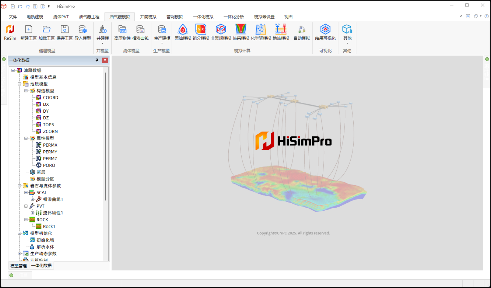 中國石油自主研發油氣藏數值模擬HiSim軟件平臺,結合自主可控采油模擬軟件和管網模擬軟件,研發形成油氣藏工程、采油氣工程、集輸工程一體化專業動態仿真國產工業化軟件HiSimPro。該軟件具備強大的工業級仿真能力,涵蓋油氣藏動態仿真、油氣藏流動機理模型、井筒動態仿真、管網動態仿真及一體化模擬分析為主的5大一級功能模塊,以及黑油模擬、組分模擬、非常規模擬、油氣藏IPR計算、井筒多相流計算、管網流體模擬、一體化耦合模擬等24個二級功能模塊,支持億級網格與千井級油氣藏模擬、50口以上壓裂水平井的復雜模擬、300口井以上井筒管網系統仿真和9種井筒設備模擬。
